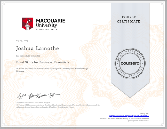 Credentials & Training Coursera: Mastering Advanced SQL Queries Microsoft Certified: Power BI Data Analyst Associate Microsoft Certified: Azure Data Fundamentals Google Data Analytics Excel Skills for Business: Essentials